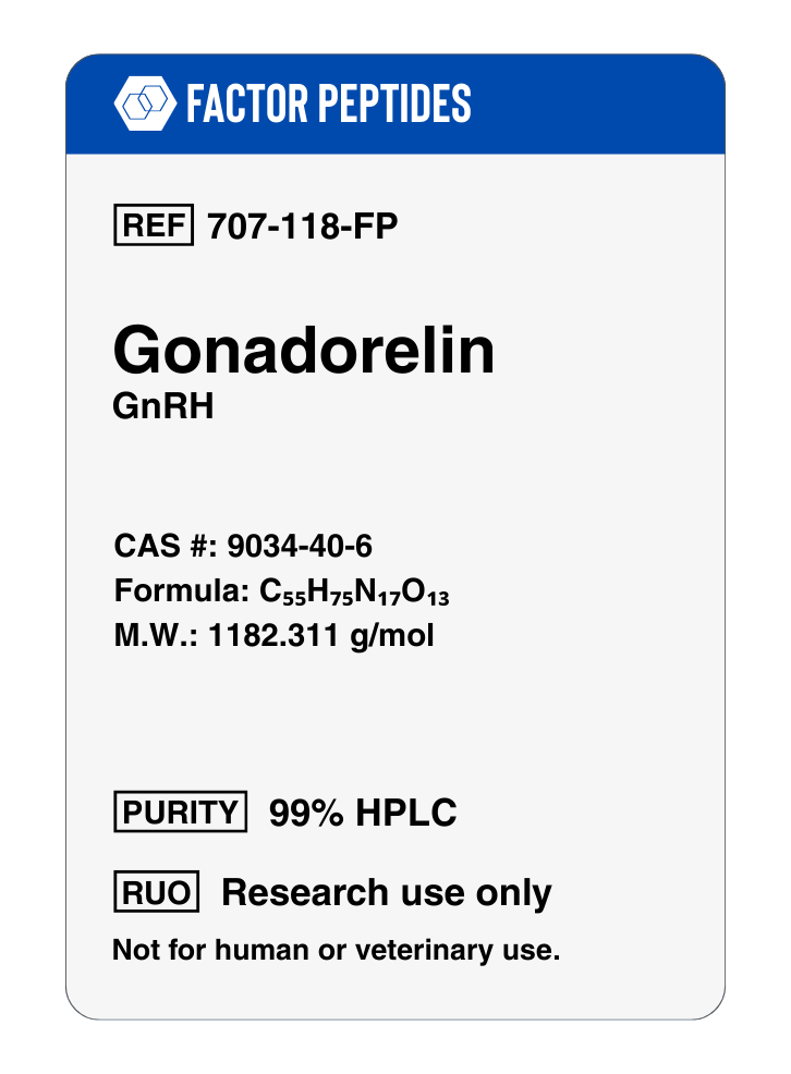 Gonadorelin exhibits minimal side effects, low oral and excellent subcutaneous bioavailability in mice. Per kg dosage in mice does not scale to humans. Gonadorelin for sale at Peptide Sciences is limited to educational and scientific research only, not for human consumption. Only buy Gonadorelin if you are a licensed researcher.