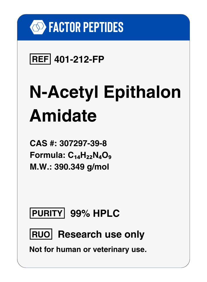 N-Acetyl Epithalon Amidate is a laboratory-designed derivative of the peptide Epithalon. The original compound was first identified in extracts of pineal tissue and is now manufactured synthetically for use in experimental settings.